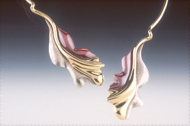 Doug Salmon has been a professional metalsmith since 1972. Focusing on jewelry and sculpture, he works primarily with brass, copper, silver, and steel. He uses a fusion welding technique to achieve the best color match and unique “molten-liquid” forms. As well as creating his own work, Doug is currently a professor of jewelry and sculpture at Frostburg (MD) State University, and Director-at-Large of the Pennsylvania Guild of Craftsmen, where he has also served as President, Vice-President of Standards, and Board member.